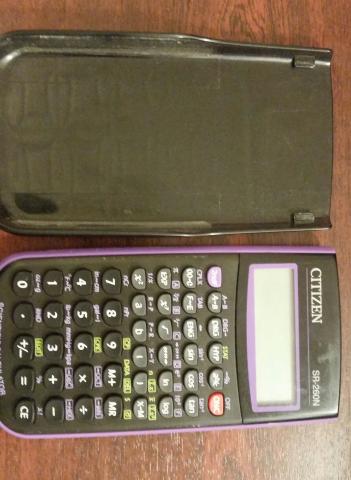 Veikiantis, mažai naudotas skaičiuotuvas Citizen SR-260N. Sienelės violetinės spalvos, nauji akumuliatoriai. Siuntimas nemokamas!