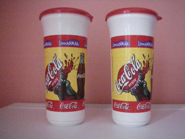 Plastikinės 0,5 l talpos gertuvės su sandariais dangteliais ir angele šiaudeliui. 15 Lt už abi
