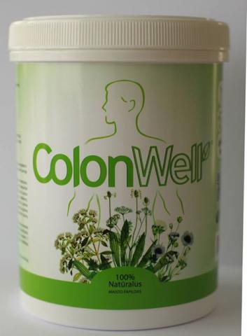 Pradine kaina 125 lt. ColonWell – maisto papildas, pagamintas tik iš natūralių medžiagų, reikalingų geram žarnyno funkcionavimui. Preparato pagrindą sudaro maistinės skaidulos (ląsteliena) – tai angliavandenių, kurių neskaido virškinimo fermentai, bet skaido storosios žarnos mikroflora, porūšis. Linų sėmenų (Linum usitatissimum) išspaudos, balkšvojo gysločio (Plantago ovata) sėklų luobelės, čija (Salvia hispanica) sėklos, kmynų (Carum carvi) vaisiai, baltasis molis, paprastojo raudonėlio (Origanum vul