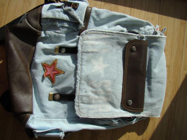 Sena džinsinė coverse kuprinė. Dugne yra nusilupęs odos gabalas, bet dugnas laikosi. Šeip labai jauki ir patogaus dydžio.