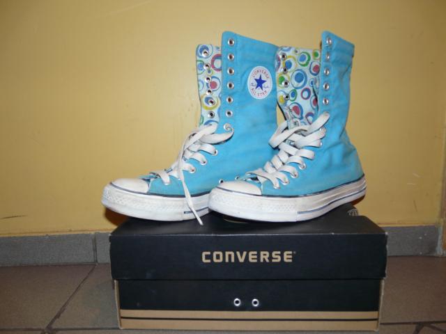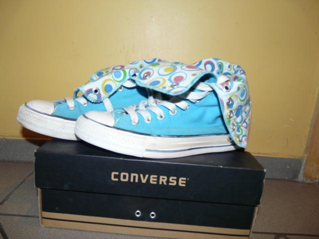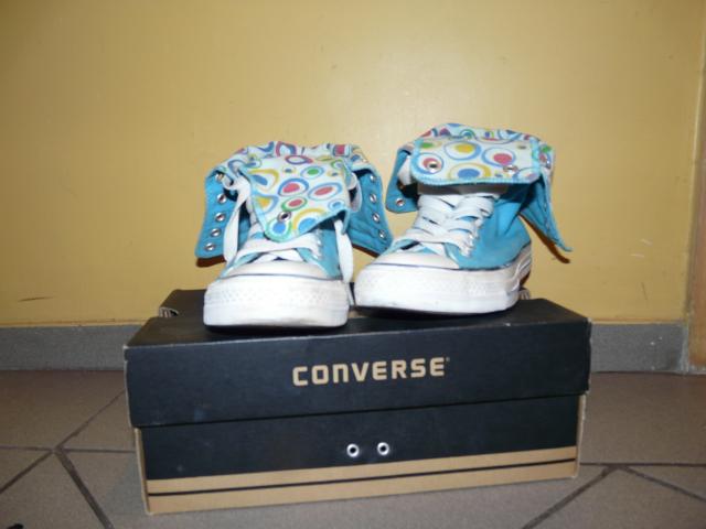 Žydri Converse sportbačiai, beveik nenešioti. Ryškios spalvos, kaip tik šio pavasario topas! :)