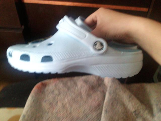 nauji roziniai melyni balti oranziniai kroksai dydziu yra visokiu