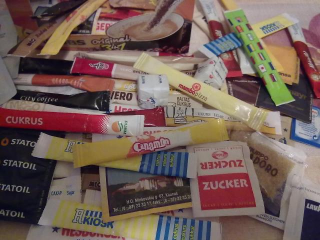 Virš 80 vnt. Yra keletas druskos. Yra vienodų. Viso ~400 g cukraus.