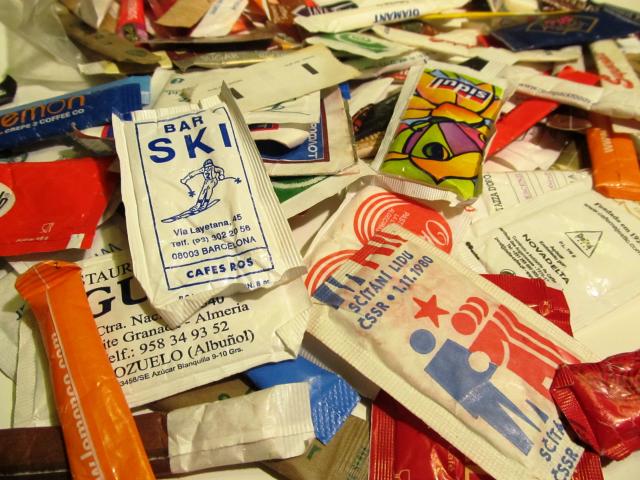 Cukriukai iš įvairių pasaulio šalių. Surinkti iš kavinių, viešbučių ir kitų vietų. ~2008m.