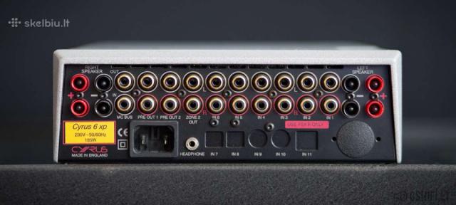 CYRUS 6XP Stereo Stiprintuvas 40W+40W RMS power into 8 ohms Specification Input Sensitivity (40W/8) 179mV Frequency Response (-3dB) 0.1Hz, >100kHz Signal to Noise Ratio (A-WTD) 104dBA Power Output 40W into 8 Ohms THD+N (Pre-Amp) <0.003% Weight - 4.0kg Dimensions - H75 x W215 x D365mm UŽSISAKYKITE: Apmokėjimas dalimis arba gavus prekę www.facebook.com/autobass.lt www.autobass.lt Panevėžys, RYO (priešais RIMI) Panevėžys, Klaipėdos g. 50 autoabass@gmail.com 0684375 67