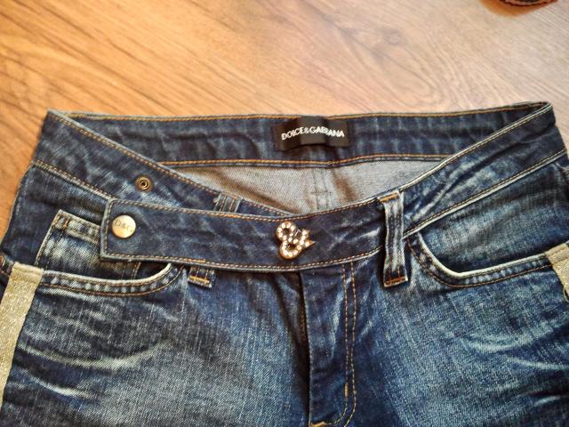 Dolce & Gabbana dzinsai. Dydis S, bet per klubus kaip XS. Ilgis iki puses blauzdos. Sudetis: 98% medvilne, 2% elastanas.