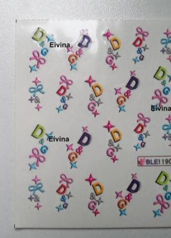 Nauji vardiniai D&G, labai madingi nagų ženkliukai. Vienas lapelis - 10Lt. NEMAINAU. Naudojimas: iškirpkite ženkliuką, nuimkit permatomą apsauginę plėvelę ir uždėkit ženkliuką ant nago. Pašlapinkite vandeniu. Atsargiai nuimkite lapelį, nagą nulakuokite permatomu laku.