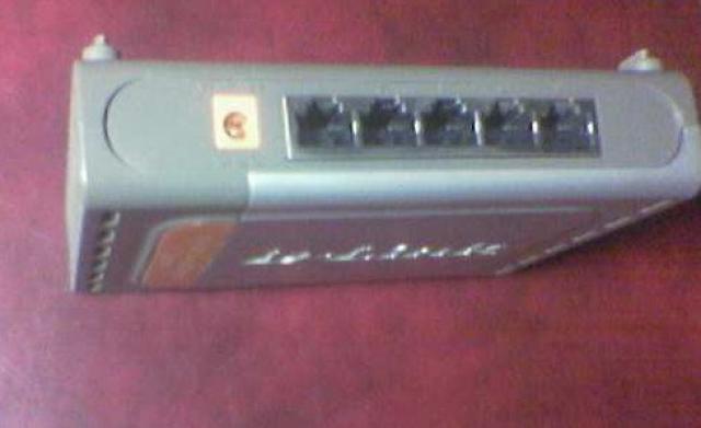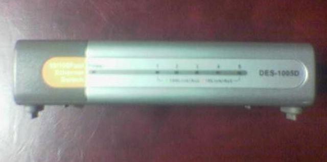 Puikiai veikiantis 5 portų komutatorius. Yra DC adapteris, dėžė, CD.