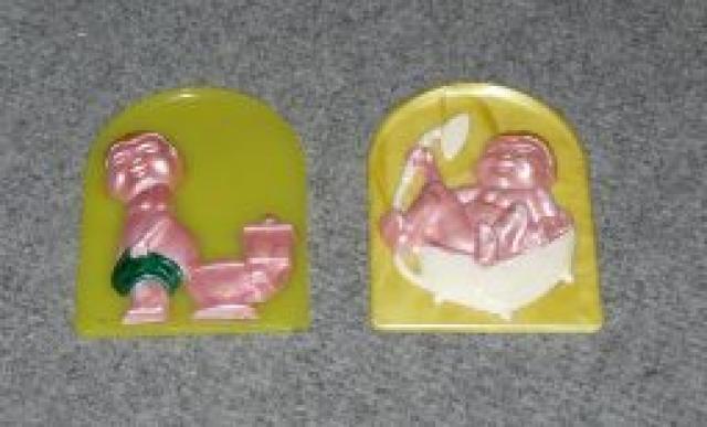 Plastmasiniai, kaip ir matosi nuotraukoje skiriasi geltonu fonu spalva: wc sodresne, duso sviesesne.