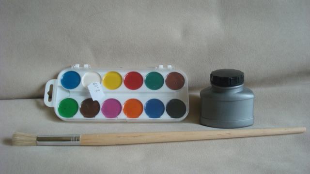 Nenaudotas teptukas. O akvarelės naudota tik raudona ir rožinė spalvos. Ir tai labai mažai.