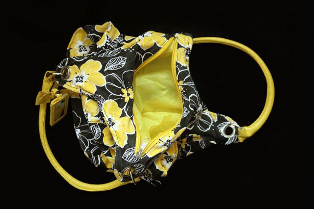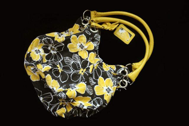 Daili geltona tašytė su juodimis gėlytėmis, vasara