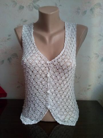 Liemenė skirta užsidėti ant viršaus. Labai daini, nėriniuota, su prisiūtais perliukais. Užsisega sagomis.