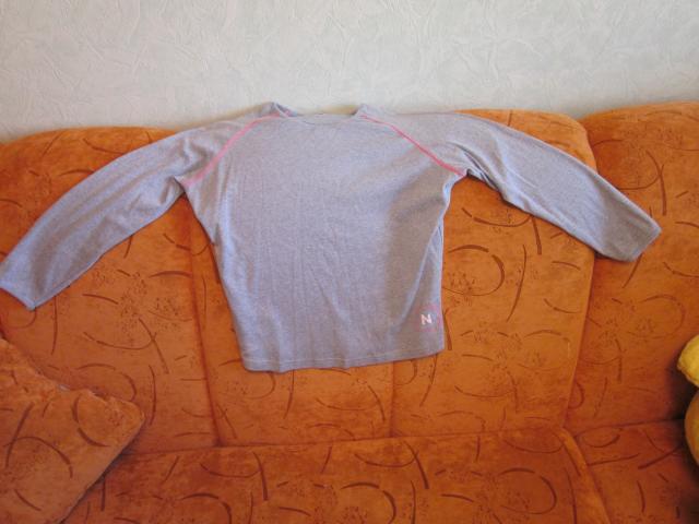 Labai graži pilka bliuskutė su ryškiai rūžavais siūlais :)