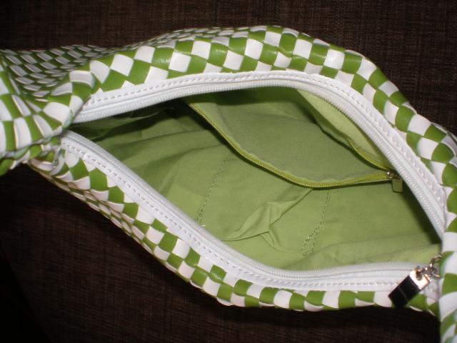 Daili vasariška originali rankinė. Iš perpintų baltų ir žalių dirbt. odos juostelių
