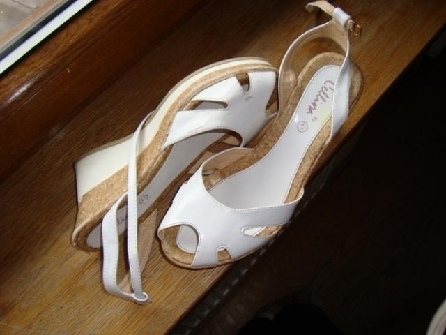 tai puikus balti aukstakulniai su aukso spalvos uzsegimu. dydis 40/41.