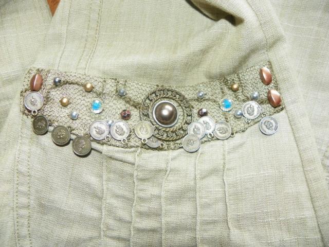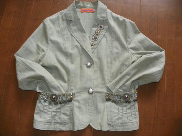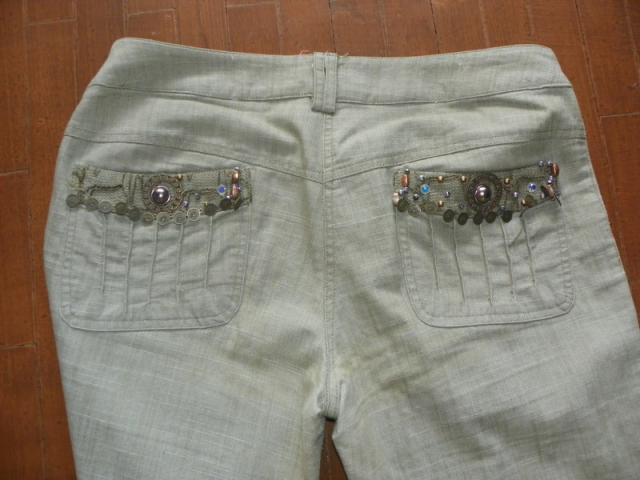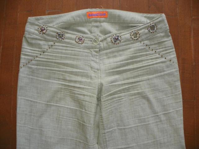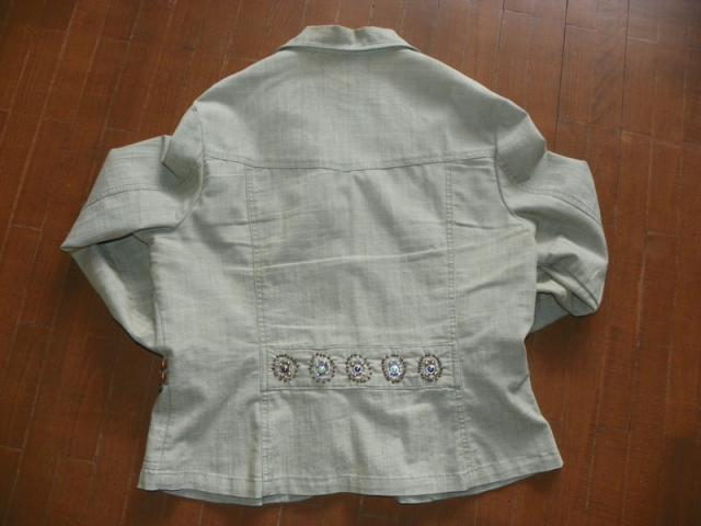 Švarkelis: Krutine 48 cm, ilgis 54 cm, juosmuo 46 cm. Kelnes: juosmuo 45 cm, klubai 52 cm, ilgis 97 cm. Be defektų, medžiaga kaip linas.