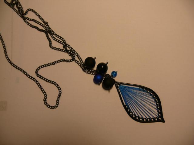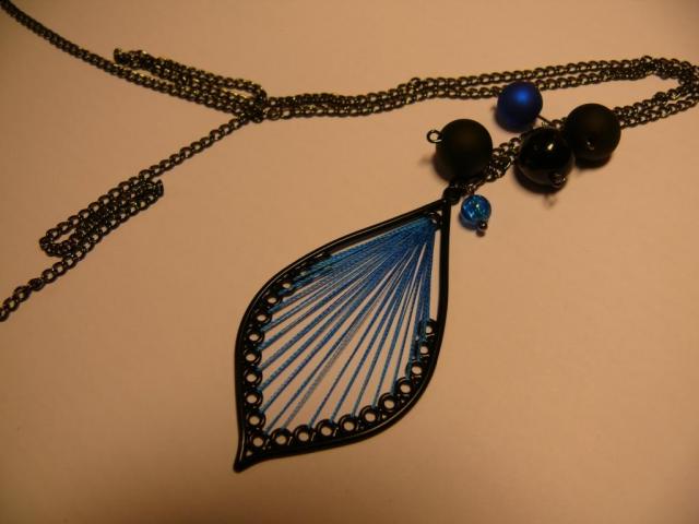 Juodas su mėlynu. Ilga juoda grandinėlė
