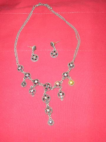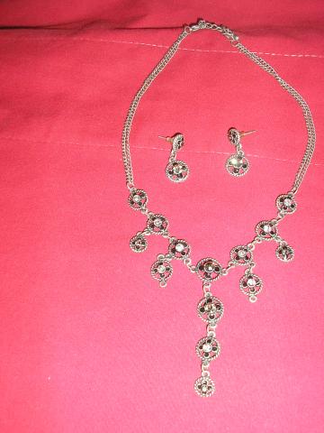 Dailus papuosalu komplektukas. Grandinele ir auskarai su blizgiais akmenukais (svarovskiais).