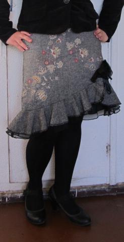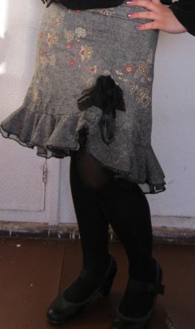 Dailus pilkos spalvos sijonukas su aukso spalvos augalu ornamentais ir papuostas stilizuota gele ;) Nesiotas vos keleta kartu ;)