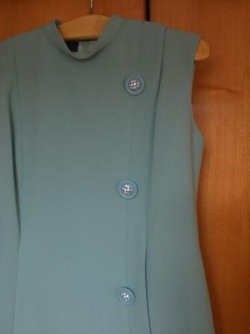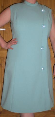 Puikios būklės retro stiliaus žydra suknelė. Visas suknelės ilgis - 104 cm. Plotis per klubus ~56 cm *2 Krūtinės plotis 54*2 Suknutė tampri, gali pasitempti 1,5 cm, bet standžios medžiagėlės, per daug nesitampo.