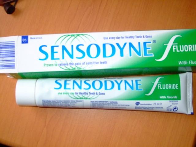 "Sensodine" dantų pasta. vieną kartą panaudota. su dėžute.