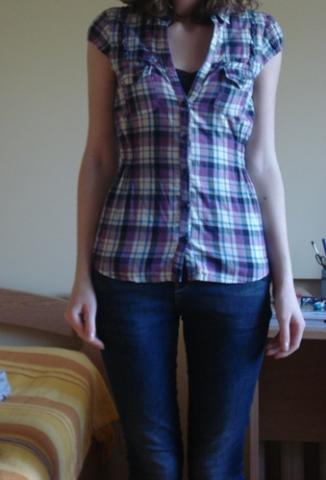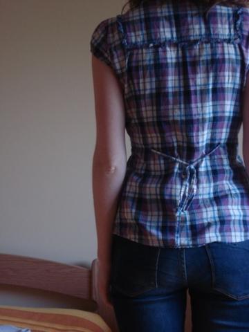 dydis s, su kišenaitėm ir raukinukais priekyje, gale susiriša. taip pat iš šonų po gumutę