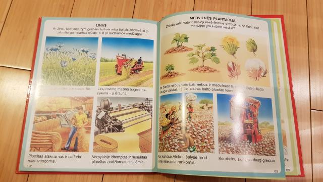 Puiki pažintinė knyga vaikams. 132 psl. Labai tikslūs knygelės paveikslėliai ir trumpi tekstai tampa tikru gidu, susipažįstant su ūkiu ir ūkininko darbais įvairiais metų laikais ir įvairiose šalyse. Vaikas aplankys pieninę, sūrinę,malūną, kepyklą, fermas, daržus, vynuogyną, ryžių lauką, kavamedžių plantaciją ir daug kitų nuostabių vietų. Puslapis po puslapio jis supras, iš kur atsiranda jo maistas ir drabužiai.