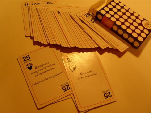Labai tiks merginų vakarėliams, kortos su užduotimis, už kurias skiriami taškai, na ten smulkiau aprašyta viskas, labai kietos užduotys, kelios matosi nuotraukoje;}