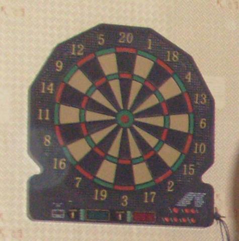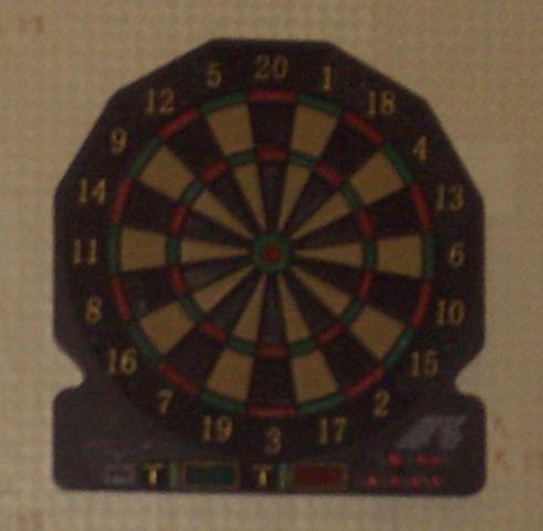 Darts žaidimas. Šiaip yra elektroninis su keliolika užprogramuotų žaidimų (pvz. kas greičiau surinks lygiai 300 taškų, t.t.) Strėlyčių nėra, parduotuvėje iki 10Lt komplektas. Ką sudomins informuosiu dėl būklės tiksliau. Reik išsitraukt ir apžiūrėt :)