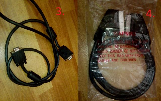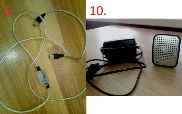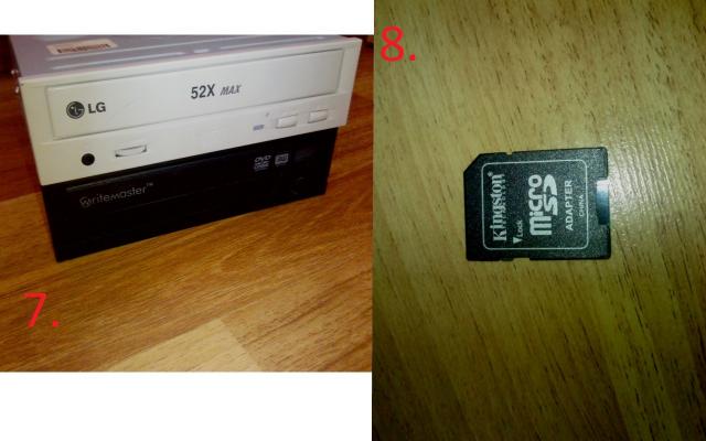 Led laikrodis (1-2 nr) pamečiau užsegima parodyta rodyklėje, bet šeip viskas veikia ir būkle labai gera. Kompo ekrano laidas (3nr). Scart laidas televizoriui (4nr). Du interneto laidai skirtingi, ir skirtingu ilgiu (5-6nr). Du dvd romai abu veikiantys (7nr). Du micro sd-hc adapteriai fotkei tik vienas (8nr). Usb laidas kompui prie kompo pajungt failus perkelt iš kompiuterio į kita kompiuterį (9nr). Sony ericsono pakrovejas ir nesiojama kolonėlė (10nr).