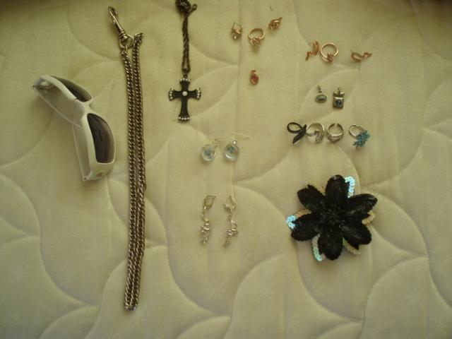 Daug papuošalų: auskarų, pakabukų, žiedų ir t.t.