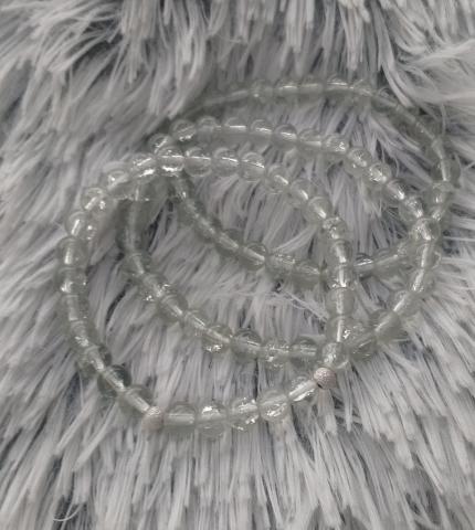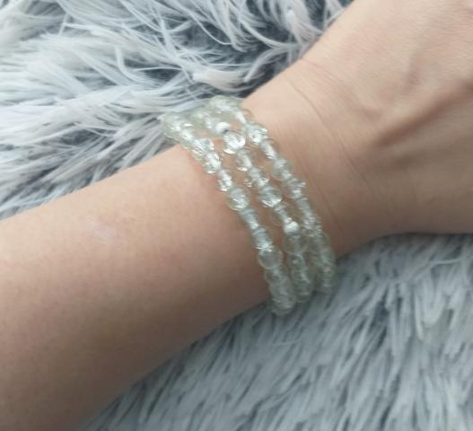 Naujos, nenešiotos, rankų darbo kalnų krištolo/daužyto stiklo 8 mm pusbrangakmenių apyrankės. Skaidrios, gali būti derinama su daužyto stiklo auskarais, su įvairiausia apranga. Jei reikia, galiu supakuoti kaip dovaną. vidurinėje apyrankėje yra 2 vnt. sidabrinių karoliukų 924 praba, 4 mm skersmens.