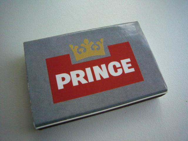 Degtukų galvutės ryškiai rūžavos. Kitoje pusėje "Prince" reklama. Kavinė "Foam" - Stokholme.