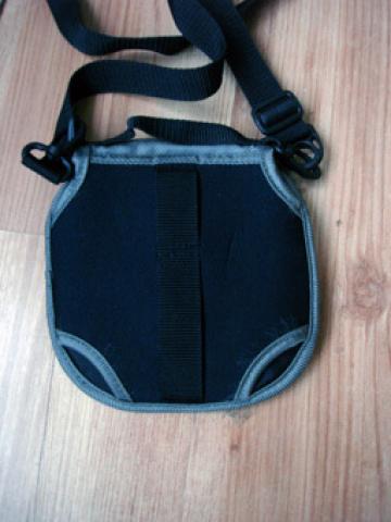 Galima į vidų įdėt ir kelis papildomus diskus. Ant reguliuojamo ilgio diržo per petį