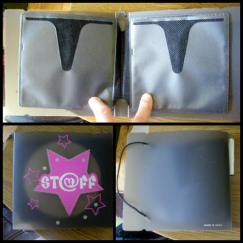 labai gražus permatomas viršelis su rožiniu užrašu. Telpa 12diskų.