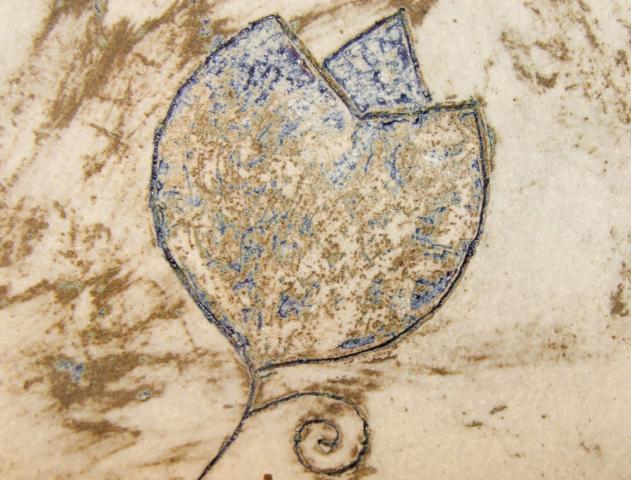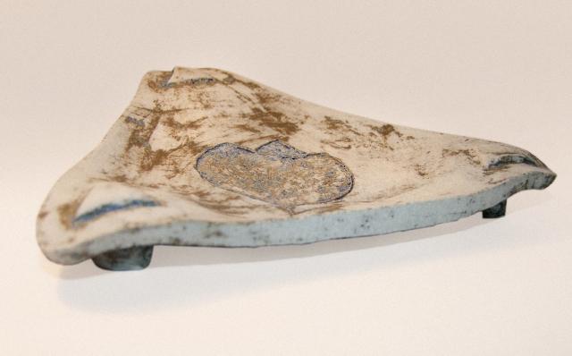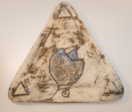 Rankų darbo vienetinė, dekoratyvinė lėkštė iš šamotinio molio. Plotis apie 18 cm.