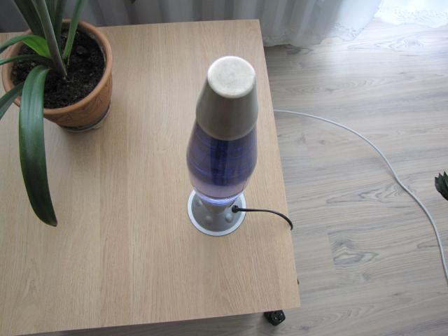 grazi dekoratyvine lempa.Kai isyla plaukioja blizguciai viduje.