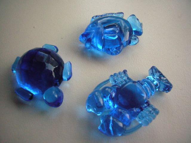 Vėžliukas + vėžiukas + žuvytė. Mėlynas plastikas.