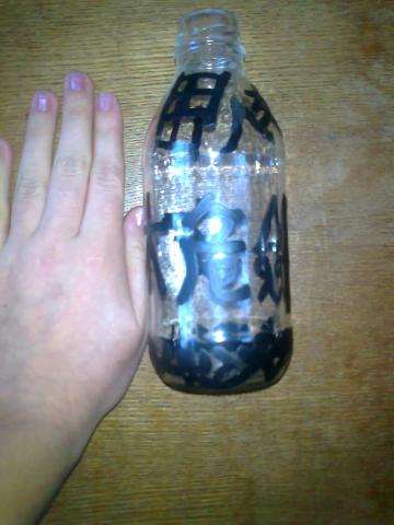 Dekoruotas butelys-vazele :) Dekoravau pati. :)
