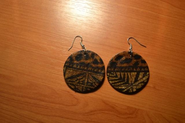 dekupažiniai rankų darbo auskarai. pagrindas - modelinas.