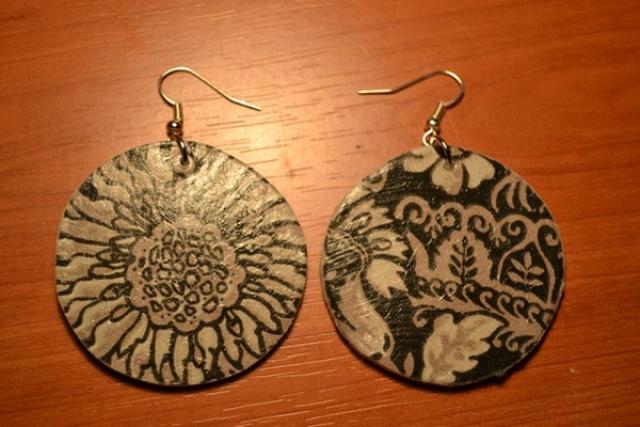dekupažiniai auskarai.