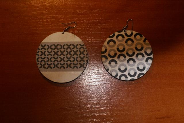 rankų darbo dekupažiniai auskarai. (nufotografuota abi pusės)