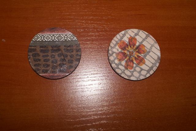 rankų darbo dekupažiniai auskarai. (nufotografuota abi pusės)