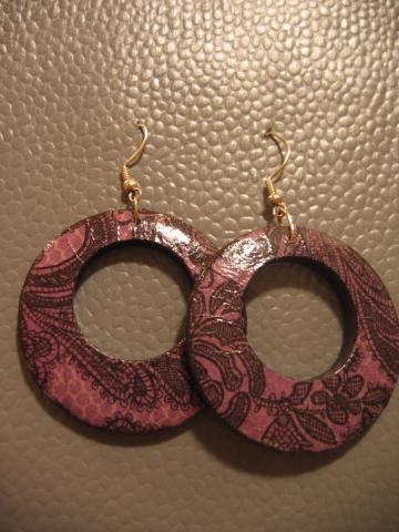 rankų darbo labai gražūs dvipusiai dekupažiniai auskarai, skersmuo 5cm.
