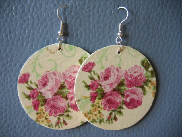 rankų darbo labai gražūs dvipusiai dekupažiniai auskarai, skersmuo 5cm. Galima derėtis.