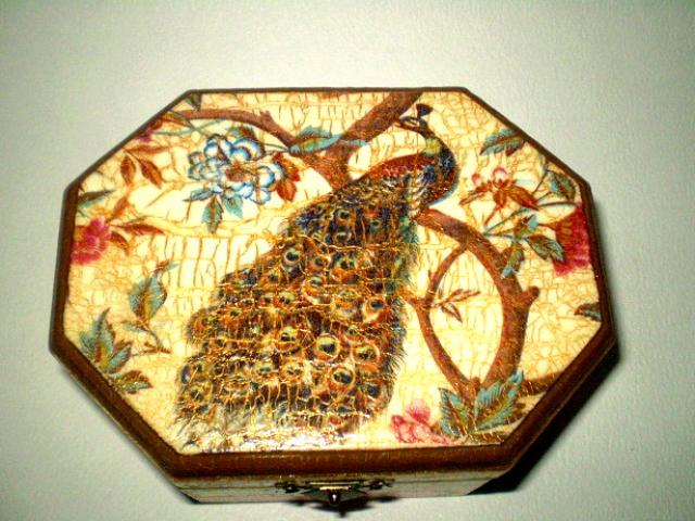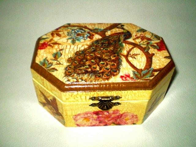 Medinė dėžutė puošta dekupažo elementais,dydis 10*14 cm.