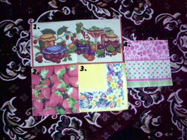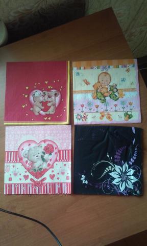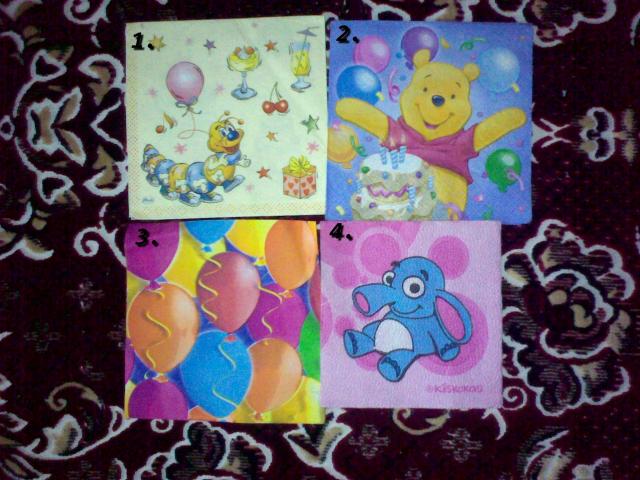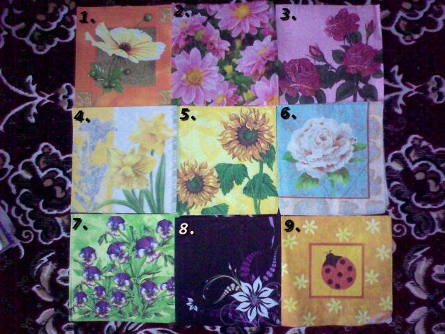 Servetėlės,kalėdinės, velykinės,vaikiškos, su gėlėm ir dar kelios įvairios :)