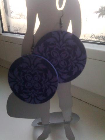 Dekupažuoti, masyvus, violetiniai auskarai.