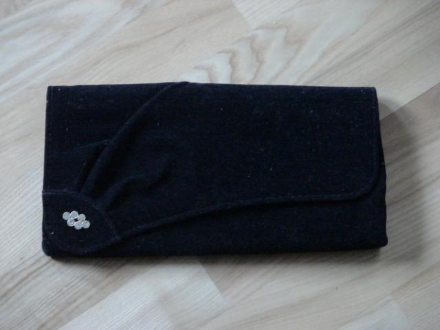 kelis kart kazkur nestasi. juodo zomšo, papuošta blizgančiais akmenukais, nemaža, bet vieno skyriaus su vidine kišenėle.