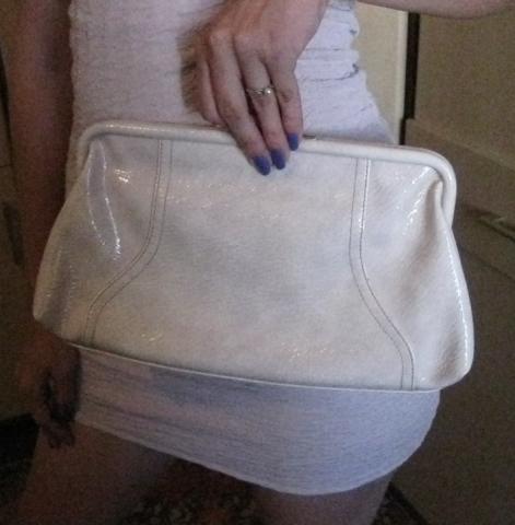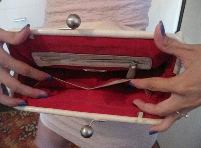 Kreminės spalvos lakuota delninukė, vintažinio stiliaus.